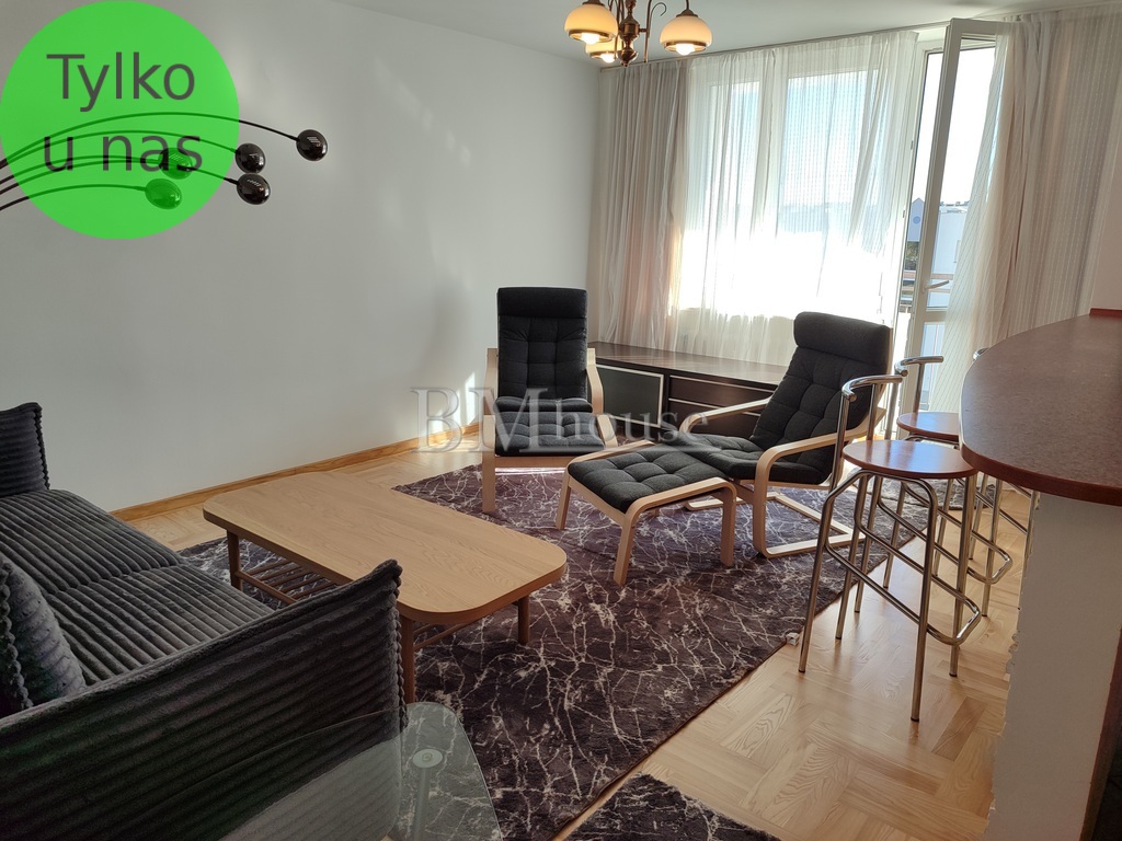 OpisWynajmę wyjątkowo atrakcyjne, rozkładowe 3 pokojowe mieszkanie o pow. 76m2 znajdujące się na 4 piętrze w 10 piętrowym bloku z nowymi windami. Zarówno budynek jak i teren wokół niego bardzo zadbane. Doskonała lokalizacja do Centrum Handlowego Wileńska i stacji metra Wileńska zaledwie 10 min spacerkiem. Mieszkanie jest całkowicie odremontowane, w pełni umeblowane i wyposażone w sprzęt AGD (pralka, lodówka z zamrażarką, zmywarką, kuchnia gazowa, okap, kuchenka mikrofalowa, meble w zabudowie kuchennej. Mieszkanie dwustronne, składa się z salonu o pow. 22 m2 otwartego na oddzieloną dużym bufetem kuchnię o pow 8 m2, oraz dwóch w pełni umeblowanych pokoi o pow. 20 m2, i 14 m2. Z salonu jest wyjście na logię o pow 7 m2. W pokojach na podłodze ułożony jest parkiet, w kuchni i łazience terakota i glazura. Parkowanie samochodu pod blokiem za szlabanem (karta wjazdowa w cenie wynajmu).